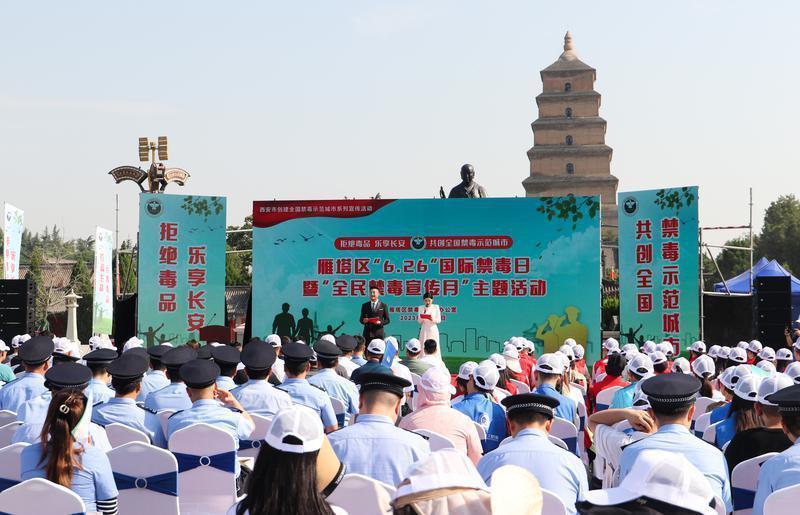 6月26日上午,雁塔区“6.26”国际禁毒日暨全面禁毒宣传月主题活动在大雁塔南广场举办。