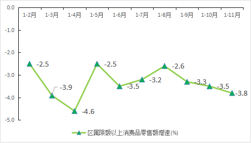 限额以上消费品零售额增速(%)