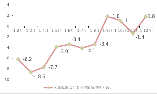 | 内容概述 | 2024年1-12月主要经济指标完成趋势,包括生产总值、区属规模以上工业增加值、区属社会消费品零售总额、区属固定资产投资增速。 | ||||
