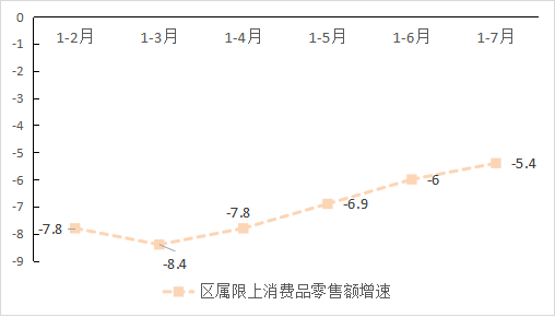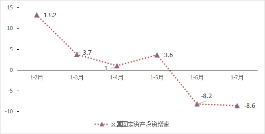 | 内容概述 | 2025年1 - 7月区属主要经济指标完成趋势图,含规模以上工业增加值增速、限额以上消费品零售额增速、固定资产投资增速 | ||||