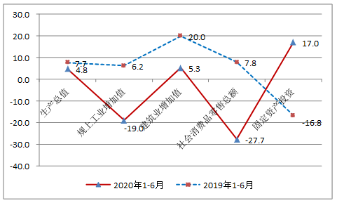 1-6月度主要经济指标运行趋势图1-6月区属主要经济指标增长情况(%)
