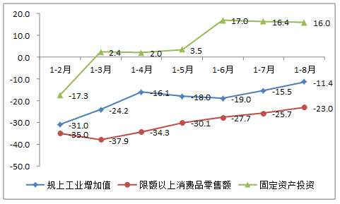1-8月度主要经济指标运行趋势图1-8月区属主要经济指标增长情况(%)