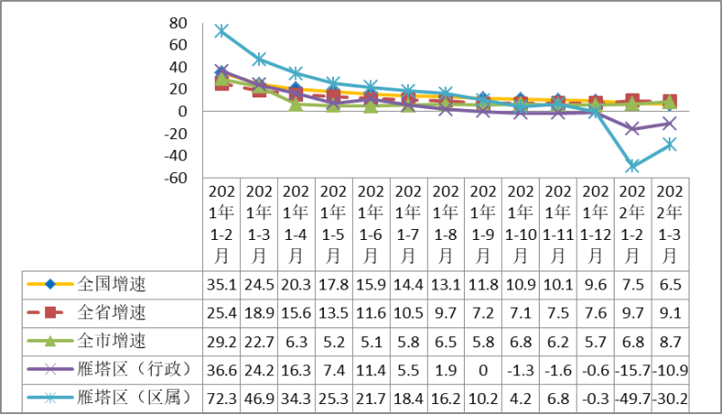 2022年1-3月主要经济指标完成趋势图