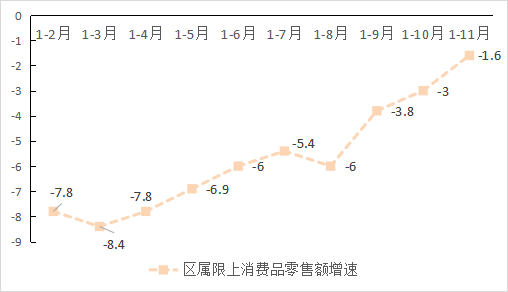 | 内容概述 | 2025年1 - 11月区属主要经济指标完成趋势图,包含规模以上工业增加值增速、限额以上消费品零售额增速、固定资产投资增速。 | ||||