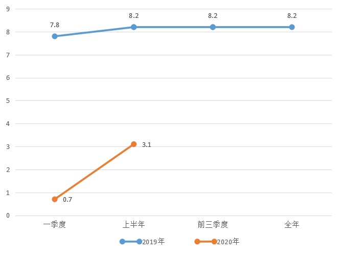 图1 城镇居民人均可支配收入增速(%)