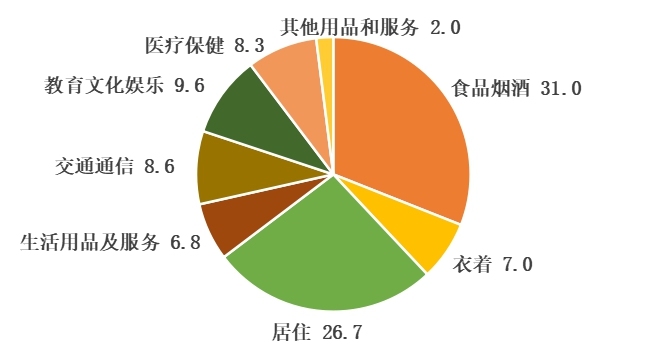 图2 2020年上半年城镇居民人均生活消费支出占比(%)