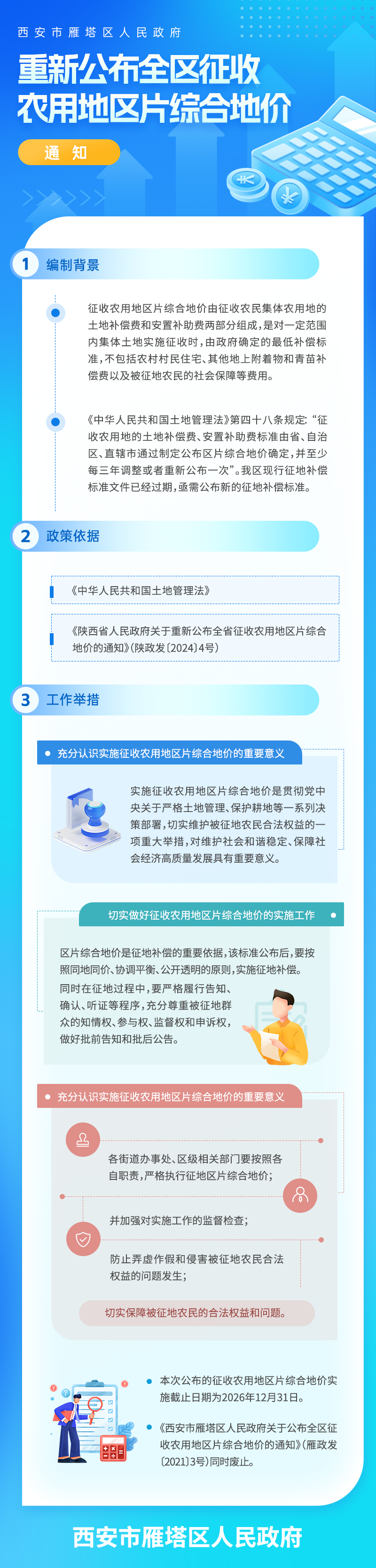 雁规〔2024〕001—区政府001雁政发〔2024〕18 号 西安市雁塔区人民政府关于重新公布全区征收农用地区片综合地价的通知