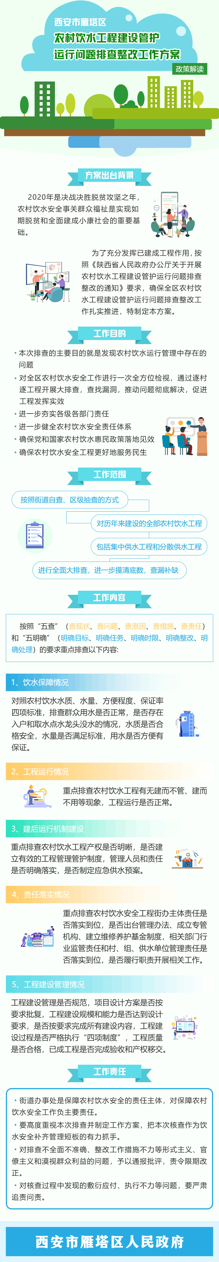 相关链接:雁政办发〔2020〕9号西安市雁塔区人民政府办公室关于印发《西安市雁塔区农村饮水工程建设管护运行问题排查整改工作方案》的通知