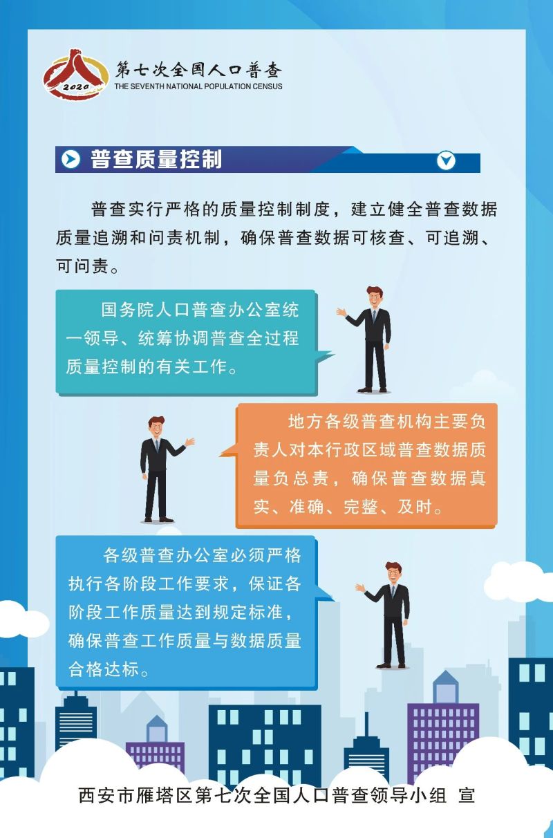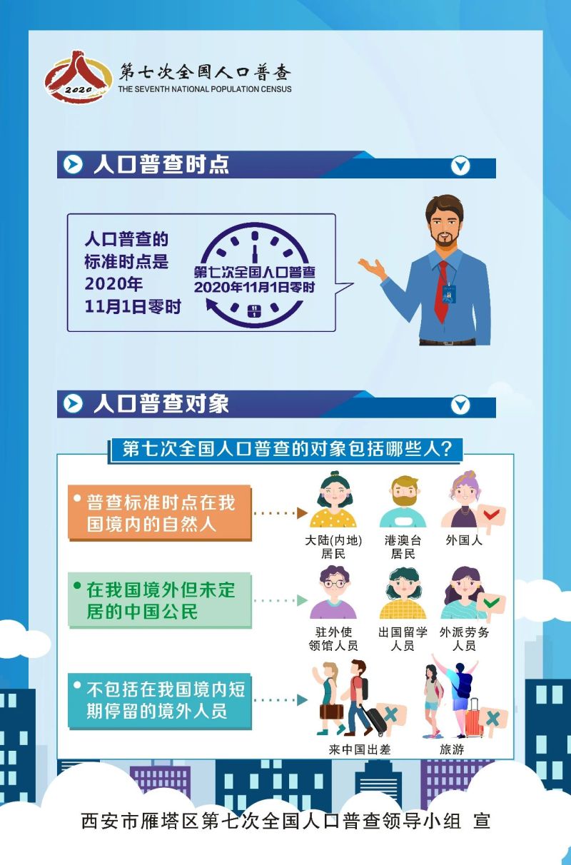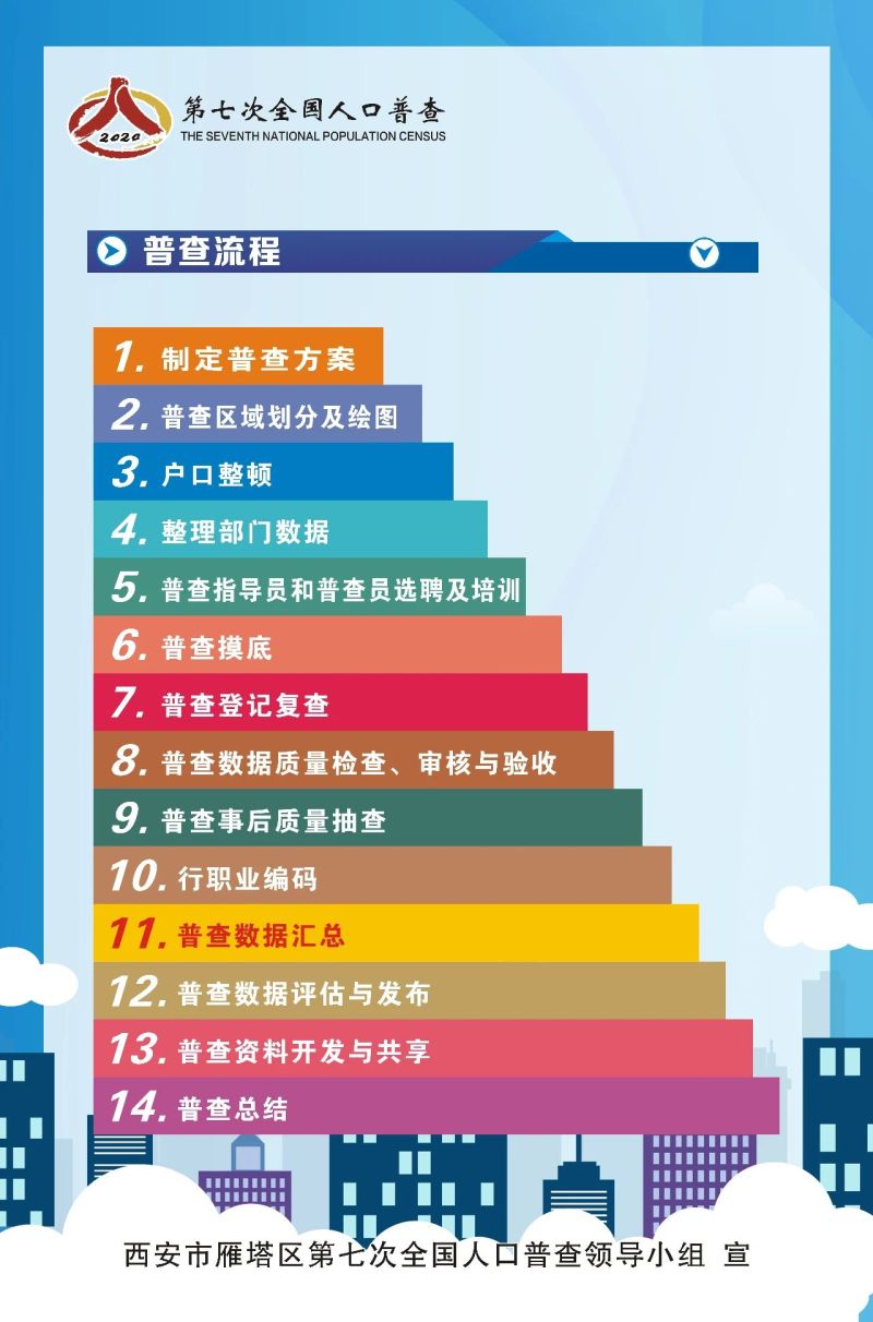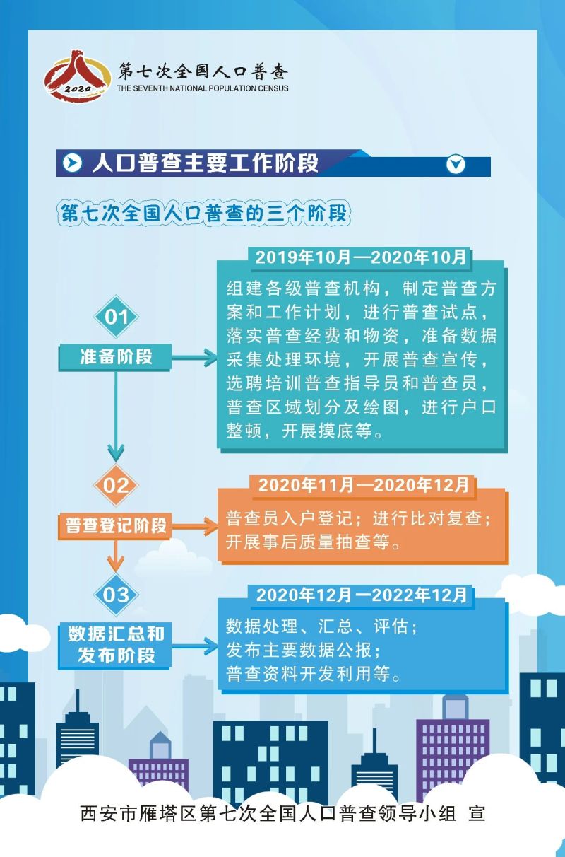 第七次全国人口普查是中国特色社会主义进入新时代,第一个百年奋斗目标即将实现,人口发展进入重要转折期的一次大型国情国力调查。通过人口普查,全面查清人口数量、结构、分布、住房等方面的最新情况,为统筹推进“新冠肺炎”疫情防控和经济社会发展,推动高质量发展提供重要数据支撑。雁塔区第七次全国人口普查开始啦!一分钟、十张图,带您走进人口普查……