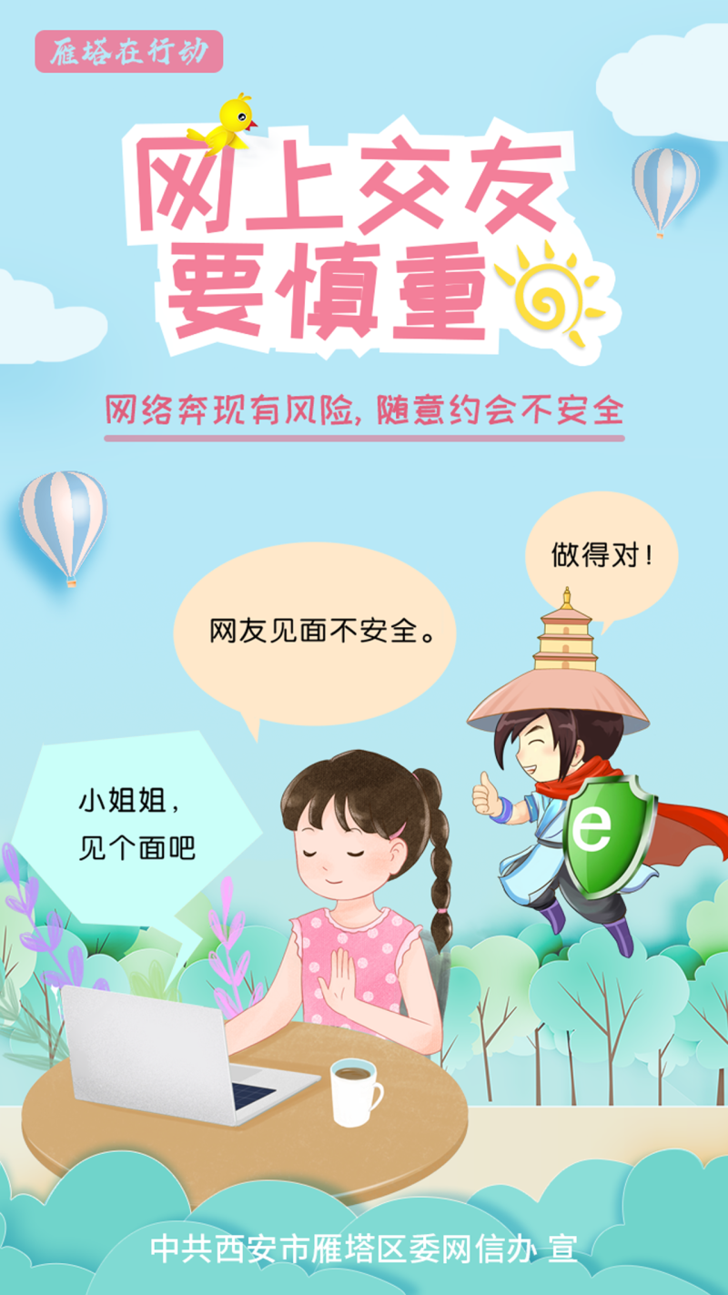 网络世界真奇妙,科学利用是个宝,网上冲浪讲文明,遵纪守法奥利给!8月19日,雁塔区委网信办推出《我是合格小网民 文明上网E起来》系列手绘海报,引导广大青少年文明上网、科学用网。