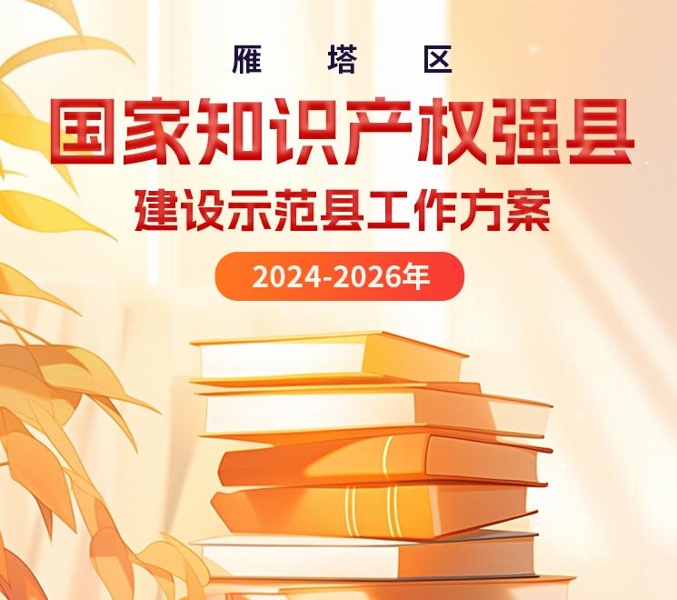 国家知识产权局于2024年1月3日印发了《国家知识产权局关于确定国家知识产权强市建设试点示范城市、强县建设试点示范县的通知》(国知发运字〔2024〕2号),确定雁塔区为国家知识产权强县建设示范县(区),按照文件要求和《知识产权强国建设纲要(2021—2035年)》、《“十四五”国家知识产权保护和运用规划》决策部署,结合省、市知识产权“十四五”规划以及《西安市雁塔区国民经济和社会发展第十四个五年规划和二〇三五年远景目标纲要》总体要求,制定雁塔区知识产权强县建设示范县工作方案,着力推进雁塔区国家知识产权强县建设示范县建设,持续提升雁塔区知识产权创造、运用、保护、管理和服务全链条综合能力。