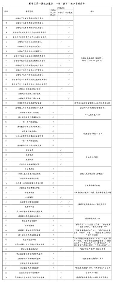 雁塔区首批政务服务“一证(照)通办”事项清单
