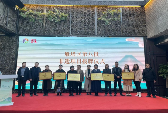 本次活动对雁塔区第八批非物质文化遗产代表性项目、雁塔区非遗传承基地分别授牌。并邀请部分雁塔区第八批非遗项目进行展示和体验。现场的代表和市民通过浓郁的书香氛围布置、精彩的诗歌朗诵、非遗项目现场互动、茶歇休憩等沉浸式体验,感受到家门口公共文化服务的便利和多元,感受到了城市烟火气里别样的文化味。