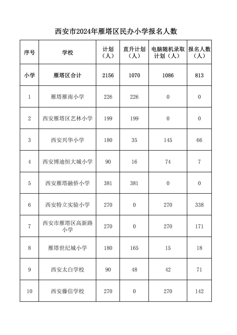 根据《西安市教育局关于做好2024年义务教育招生入学工作的通知》(市教发〔2024〕67号)要求,现将雁塔区各民办小学报名人数公布如下:
