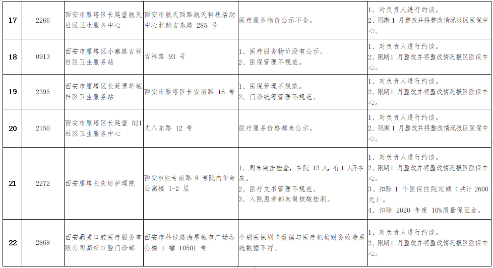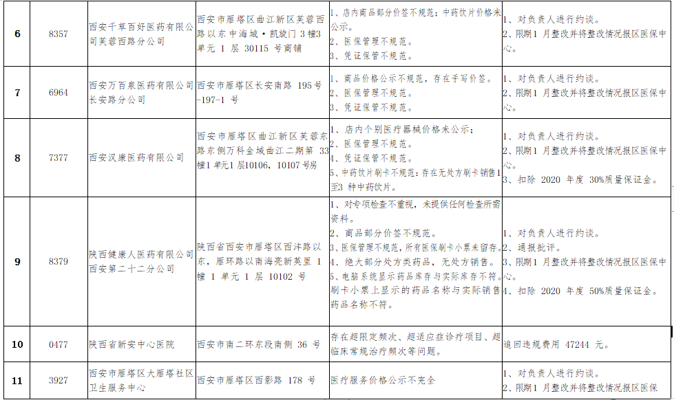 (五)存在药师不在岗;药品摆放不规范,非医保药品、用品与医保药品未分开放置;医保处方未保留或管理不规范;串换药品进行刷卡;药品进销存记录与医保刷卡记录无法对应且无合理解释等现象。(六)部分医保定点医疗机构未严格落实国务院联防联控机制有关要求,未给新入院患者进行核酸检测,给疫情防控带来一定隐患。