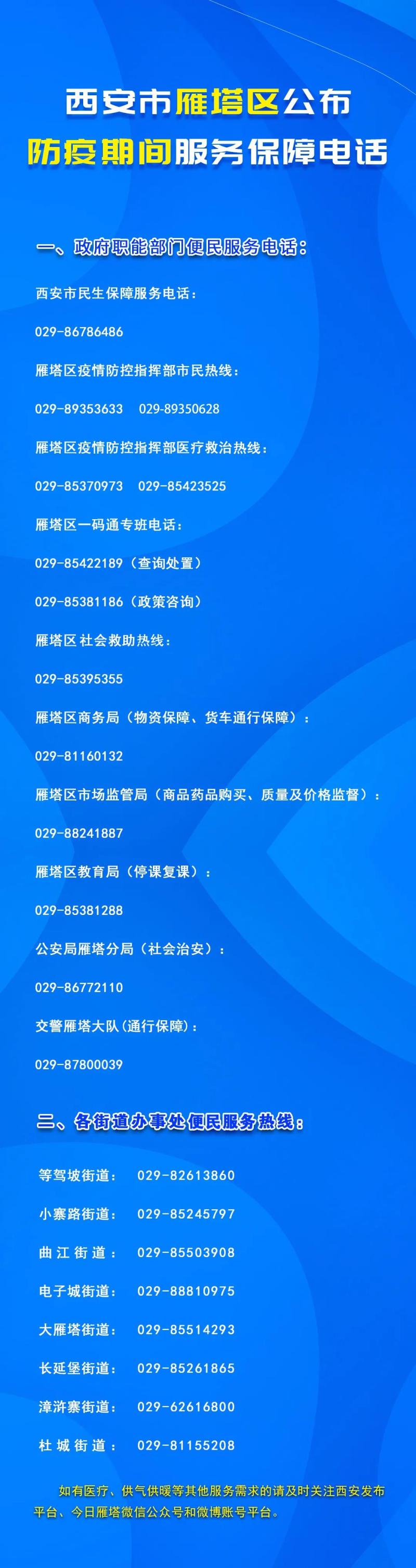 | 内容概述 | 西安市雁塔区公布防疫期间服务保障电话 | ||||