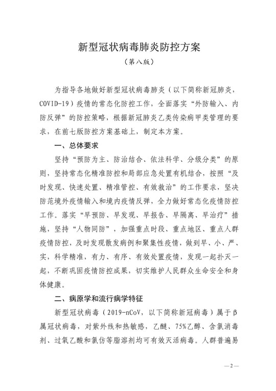 为进一步指导各地做好新型冠状病毒肺炎防控工作,在全面总结我国常态化疫情防控和局部聚集性疫情处置工作经验基础上,结合全国疫情形势变化及研究进展,国务院应对新型冠状病毒肺炎疫情联防联控机制综合组组织修订了《新型冠状病毒肺炎防控方案》,主要修订内容如下: