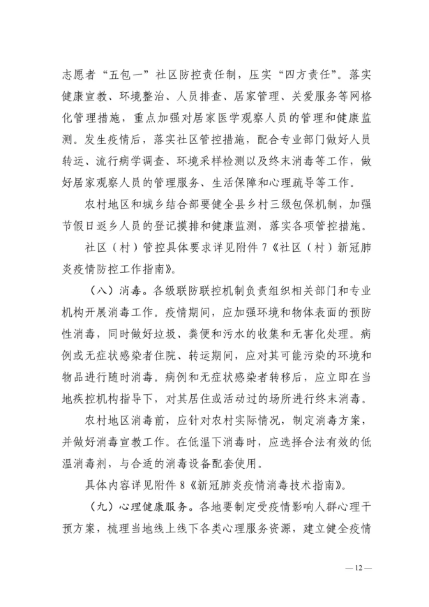 制定和完善公民防疫基本行为准则、监测、流行病学调查、密切接触者判定与管理、疫情相关人员转运、隔离医学观察、社区防控、消毒、心理健康服务、样本采集和检测、境外输入疫情防控、重点环节疫情防控等12个工作文件,加强对不同防控领域和环节的具体工作指导。