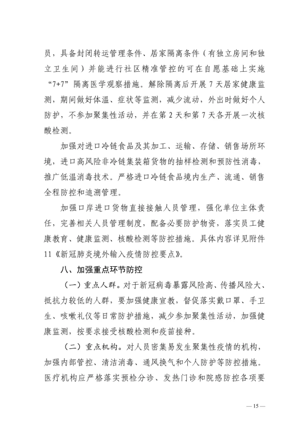 完善外防输入政策措施,坚持“人物同防”,加强对进口冷链食品和物品疫情防控。强调加强重点时段、重点地区、重点人群疫情防控,有效防范境内疫情反弹。