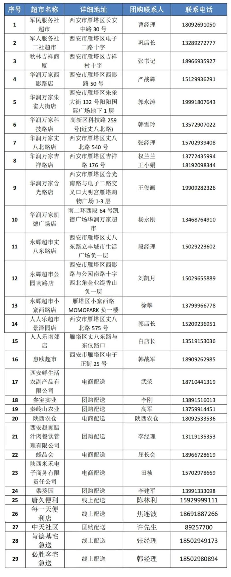 为确保物资充足,雁塔区迅速确定应急保供骨干企业名单,积极组织协调货源供给,督促华润万家、人人乐、永辉超市等商贸龙头企业加大生活必需品采购,为辖区各超市、便利店及电商平台企业办理人员通行证和车辆通行证,组织29家保供企业紧急开通线上配送业务,鼓励企业利用微信小程序、企业APP等多元化方式提供线上购买渠道,加快推广“居民下单、商超配货、集中配送、社区工作人员(志愿者)送达”的闭环供应模式,有效保障小区疫情防控期间居民的基本生活物资需求,打通服务群众“最后一米”。