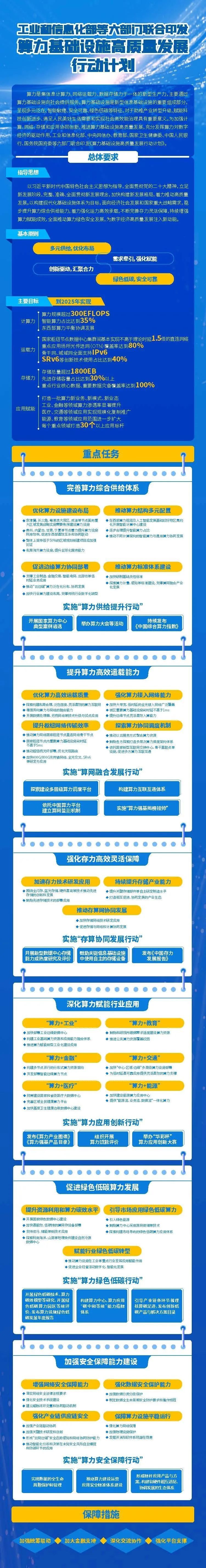 近日,工业和信息化部、中央网信办、教育部、国家卫生健康委、中国人民银行、国务院国资委等六部门联合印发《算力基础设施高质量发展行动计划》(以下简称《行动计划》)。为更好地理解和实施《行动计划》,结合各方关注问题,现对有关政策要点解读如下:
