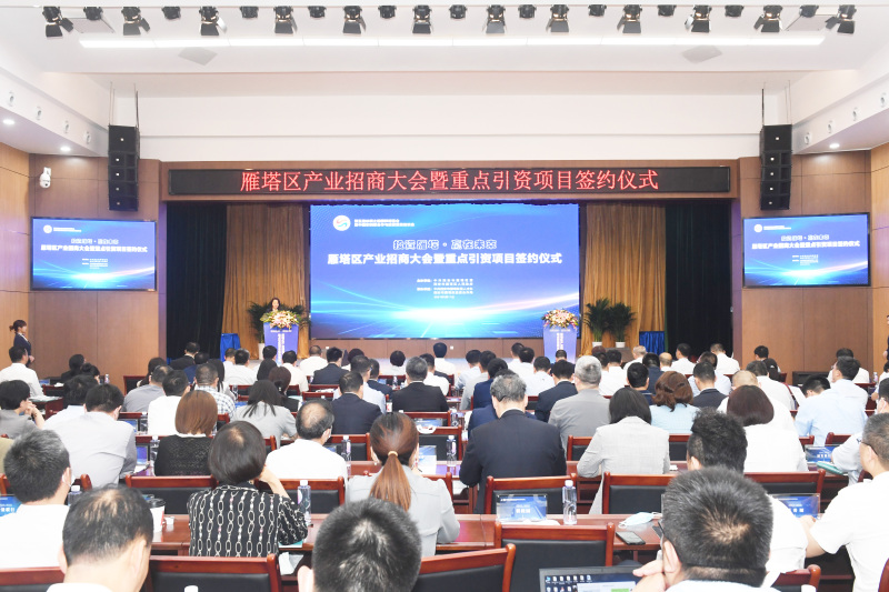 5月11日下午,在第五届丝绸之路国际博览会开幕当天,雁塔区举行“投资雁塔 赢在未来”产业招商大会暨重点引资项目签约仪式。会上集中展示推介了城市更新重点引资项目,发布了《雁塔区主导产业扶持政策》。29个产业合作项目在现场成功签约,投资总额288亿元,雁塔区产业招商扬帆启航。西安市副市长肖西亮出席会议并致辞,省市相关部门领导,雁塔区委书记王斌,区委副书记、区长崔诗越,区政协主席史青及相关区级领导,知名境内外商协会、各行业龙头企业等200余人参加大会。
