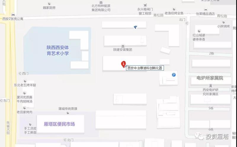 项目内容:西安中冶赛迪科创孵化器(省级科技企业孵化器,以下简称“EFI孵化器”) 朱雀路与青松路十字向东200米,近邻地铁2号线纬一街站,距绕城高速长安路入口1.6公里,交通便利。