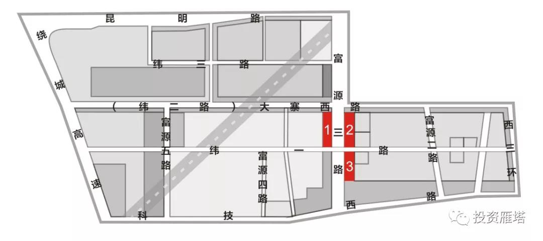项目区位:项目位于鱼化工业园区南北向商业发展轴富源三路两侧,分三个地块。
