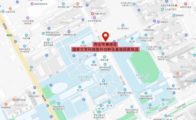 项目介绍:项目位于延兴门西路与延兴门二路十字东北角,西安交通大学国家大学科技园内,南二环与南三环之间,数十条公交线路、双地铁加持,地铁3号线青龙寺站约1公里左右,地铁5号线理工大曲江校区站约600米,交通便利路网通畅。项目地处政务资源、商业资源、医疗资源、教育资源、居住环境资源等为一体的成熟片区内,青龙寺遗址公园、唐城墙遗址公园、大雁塔文化休闲景区等围绕周边,办公、生活配套设施一应俱全,是西安交通大学国家大学科技园标杆。