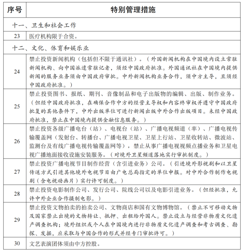 七、《自贸试验区负面清单》中未列出的文化、金融等领域与行政审批、资质条件、国家安全等相关措施,按照现行规定执行。