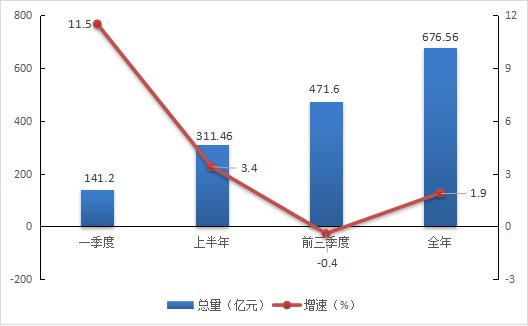 全区社会消费品零售总额完成1133.01亿元,同比增长0.7%,其中区属社会消费品零售总额完成382.18亿元,同比增长1.5%。